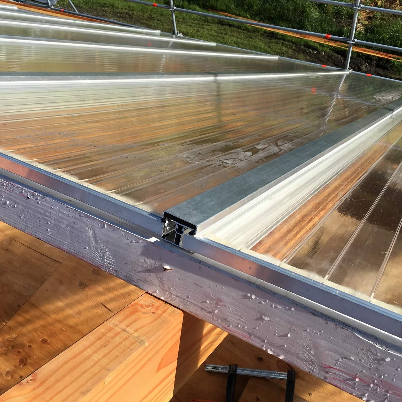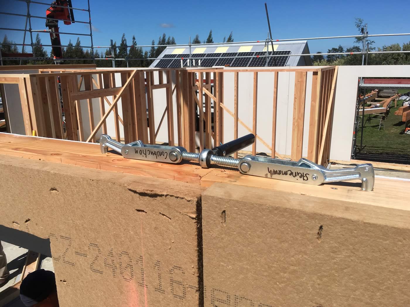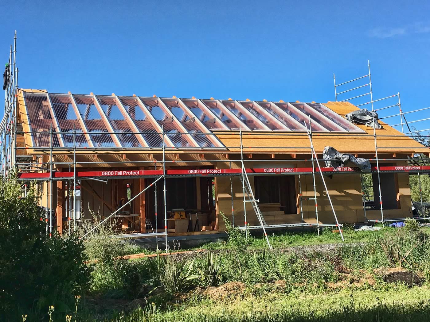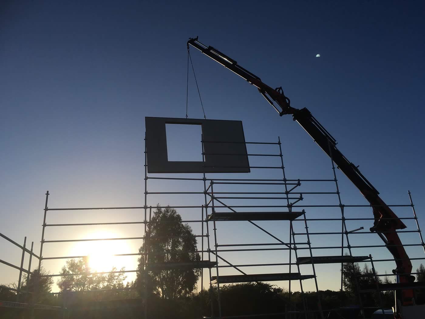 Now that all the major elements are prefabricated, walls are craned into the tracking plates and locked and screwed in place, followed by the roof and installation of the windows.
